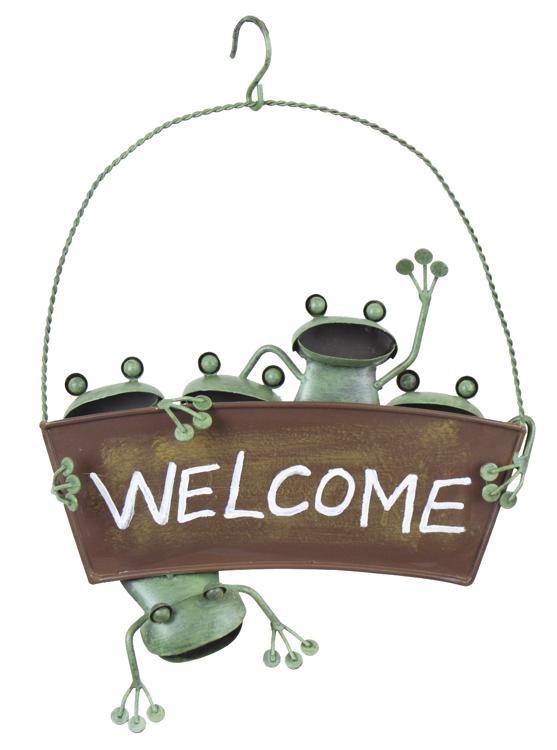 お庭やお店のアクセントに。ブリキ製のかわいいカエルのオーナメントです。引っ掛けるためのフック付き。