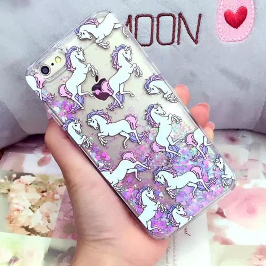 Hot unicorn horse liquid case for iPhone 5 5S/6 6 S/6 plus/6 splus Apple quicksand shell unicorn