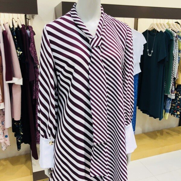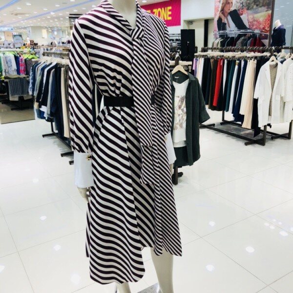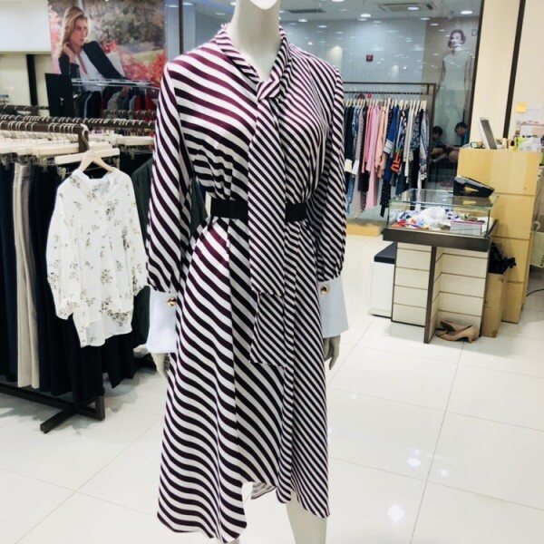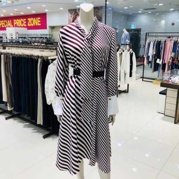 트렌디한 롱스트라이프 원피스입니다소매와 넥라인의 세련된 포인트로 멋스러운 스타일을 연출하실수있습니다
