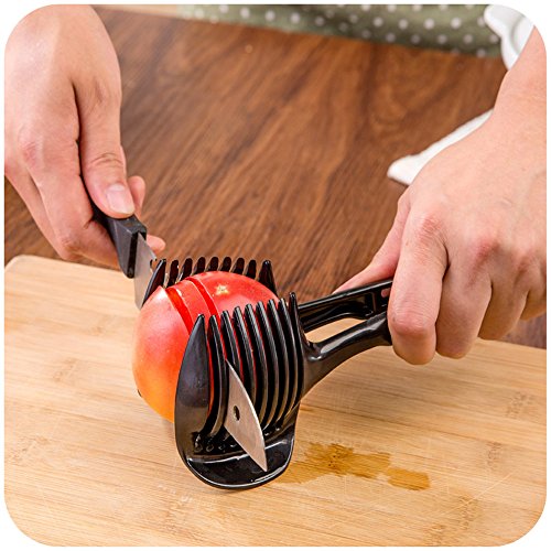 Huayoung ABS Fruit Slicer Multifunctional Vegetable Fruit Circular Slicer Tomato Slicer Fruits Cutter Stand Utensilios (Black)