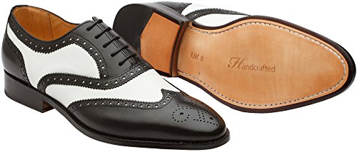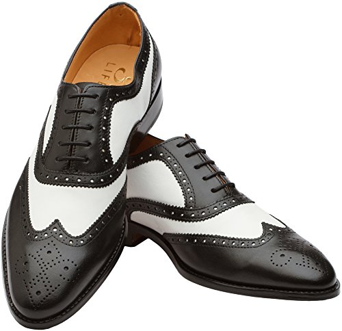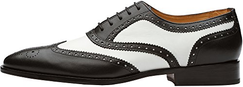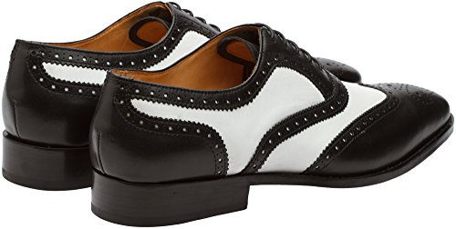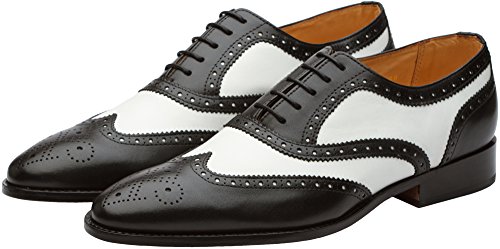 3DM Lifestyle Men's Classic Brogue Oxford Wing-Tip Lace Up Leather Lined Perforated Dress Oxfords Shoes US 9 - 9.5 Black/White