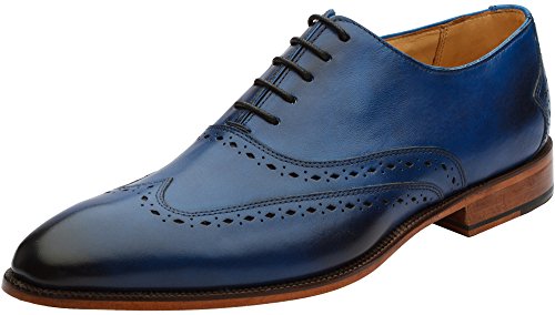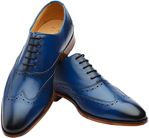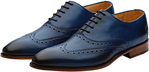 3DM Lifestyle Men's Classic Brogue Oxford Wing-Tip Lace Up Leather Lined Perforated Dress Oxfords Shoes US 10 - 10.5 Blue