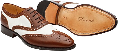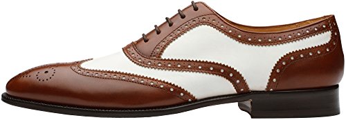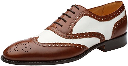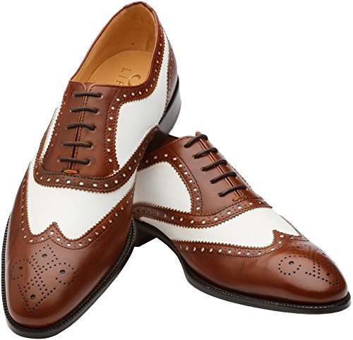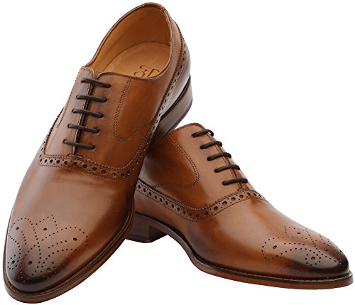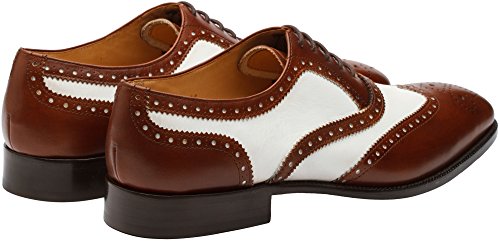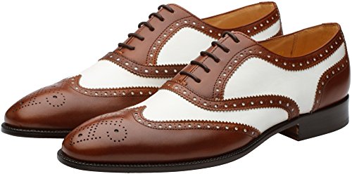 3DM Lifestyle Men's Classic Brogue Oxford Wing-Tip Lace Up Leather Lined Perforated Dress Oxfords Shoes US 9 - 9.5 Brown/White