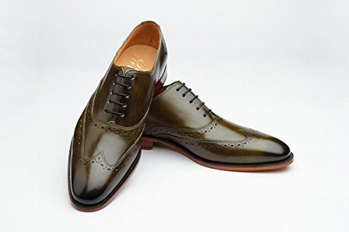 3DM Lifestyle Men's Classic Brogue Oxford Wing-Tip Lace Up Leather Lined Perforated Dress Oxfords Shoes US 9 - 9.5 Olive