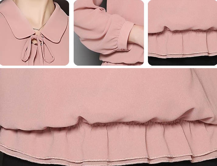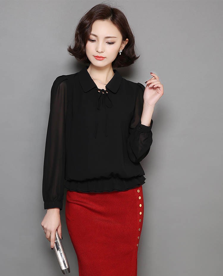 【通関待ちや不良により出荷遅くなる場合はメールにてご連絡いたします。メール受信設定によっては正常に受信されない場合はございますので、 弊社からのメールを予め受信頂くようご設定くださいませ。】 トップス シフォンブラウス リボン フリル ウエストゴム えり付き 襟 長袖 大人 レディス レディース 春春 新作裾フリルシフォンブラウスです。襟付きで春先のレイヤード風に好相性。◆サイズ:S肩幅35胸囲82着丈56袖丈55M肩幅35胸囲86着丈57袖丈55L肩幅35胸囲90着丈58袖丈55XL肩幅35胸囲94着丈59袖丈552XL肩幅36胸囲98着丈60袖丈553XL肩幅36胸囲102着丈61袖丈55◆素材:シフォン