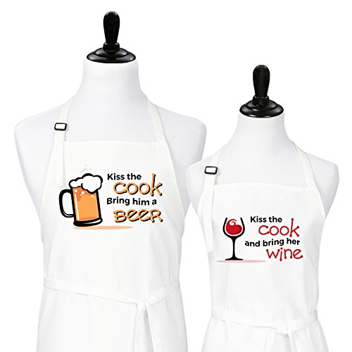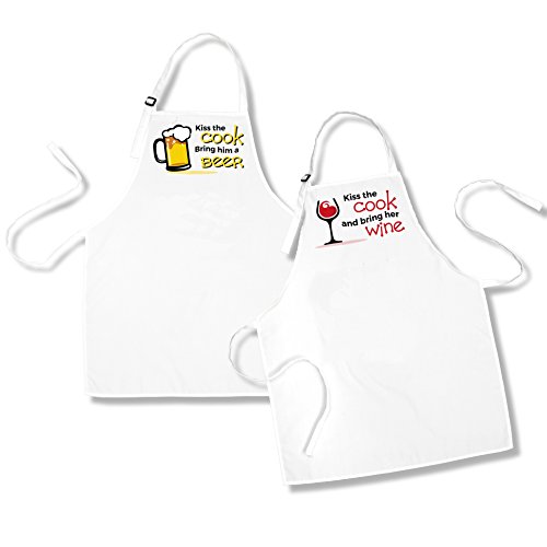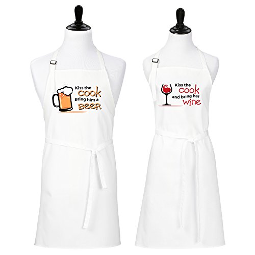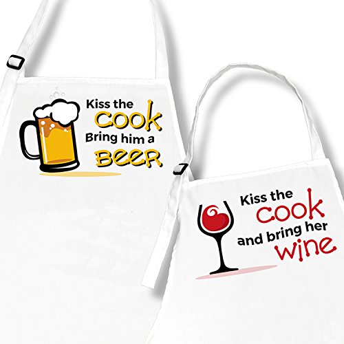 Kiss the Cook Bring Him a Beer Kiss the Cook and Bring Her Wine Aprons for Couples (Beer and Wine)