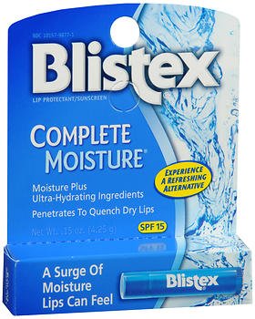 Studio : BLISTEX INCORPORATED Publisher : BLISTEX INCORPORATED Binding : Health and Beauty Product Description Temporarily protects and helps relieve chapped or cracked lips. Helps prevent sunburn. Complete Moisture combines advanced hydrating ingredients with actual moisture to deliver a unique super-moisturizing sensation you'll feel immediately.Active Ingredients: Dimethicone 2.0% (w/w); Octinoxate 7.5% (w/w); Oxybenzone 2.5% (w/w) 0