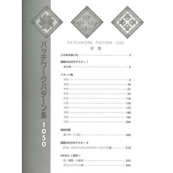 【商品基本情報】 商品名称:パッチワークパターン集1050 著者/出版社:/ 初版発行日:2015/05/25 サイズ:A4変判 ページ数:230 ISBN/JAN:9784863226388/4528189419018