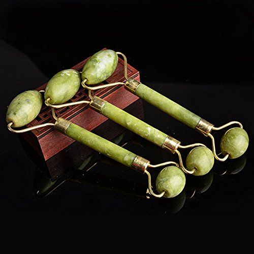 HIGH QUALITY: made by 100% natural original jade stone, more heavier and green than traditional jade rollers.