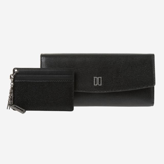 은은한 광택감의 육각 엠보 가죽 소재 바탕에 스와로브스키 DD 로고 장식으로 화려한 느낌을 주는 ALICE 장지갑입니다.