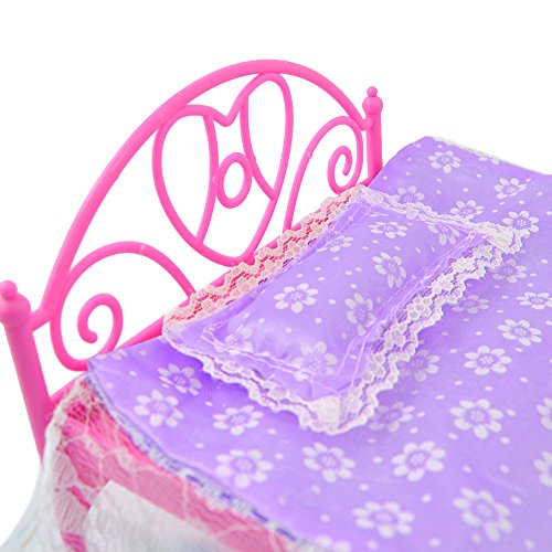 - Feature : Barbie Doll Bed / Dolls Dollhouse Bedroom Furniture / Purple Mini Bed With Pillow for Barbies / Great gift to children Great fun For Kids