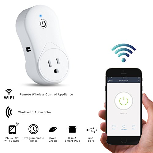 Cevitor Smart Socket Plugs Outlet, Work with Alexa for voice control and APP Connect, No Hub Required, With 1 USB Port ( C2001P)
