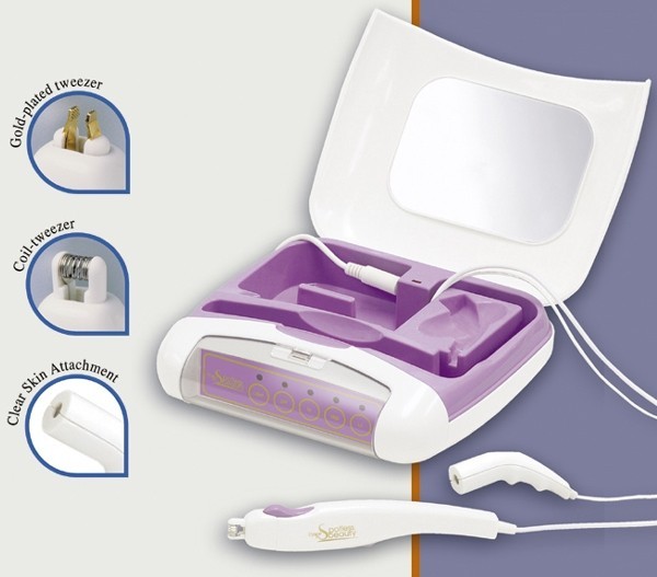 | 高周波式なので全身のあらゆる箇所、腕や脚・ワキなどに限らず、お顔の眉等にもご使用いただけます。太い毛から細い毛、肌の敏感さに合わせて、高周波の強さを強(High)から中(Med)、弱(Low)の三段階で自由に選べます。さらに、毛に合わせて二種類のツィーザー(ピンセット式・コイル式)を選んで脱毛できます。可視光線を発生させるクリアスキンライト機能付き。 |