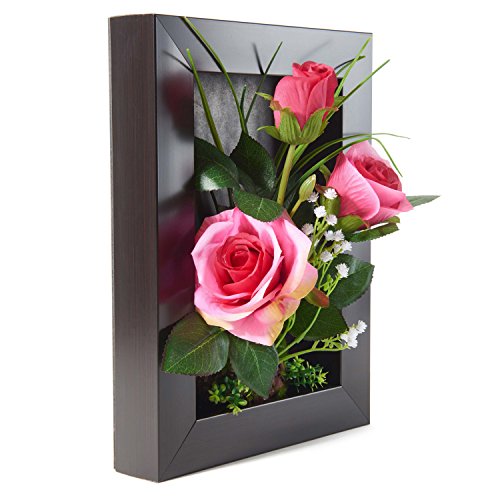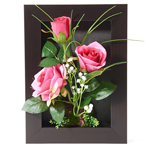 3D Frames Artificial Flowers Arrangement Tabletop Decoration or Wall Mounted Sculptures (Rose)