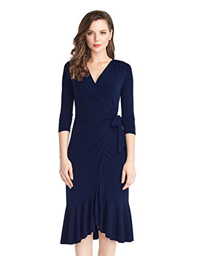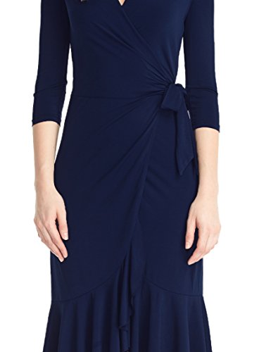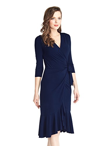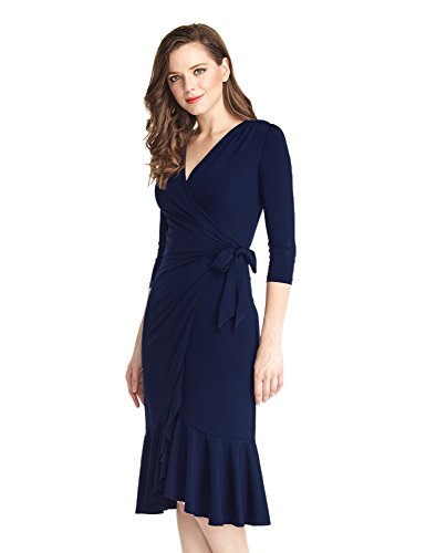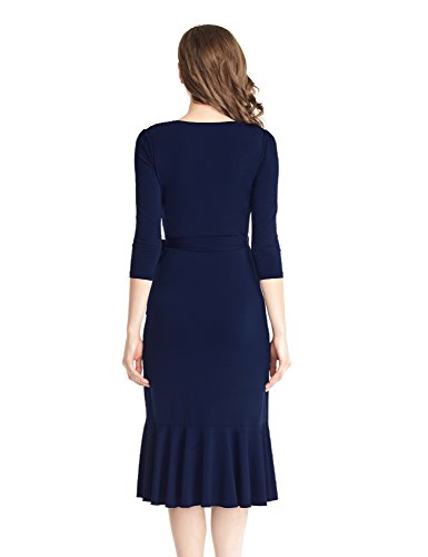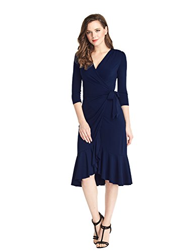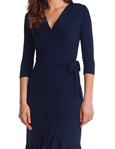 -. Title : Grapent Women's Navy 3/4 Sleeve Ruffle Surplice Neckline Formal Midi Wrap Dress