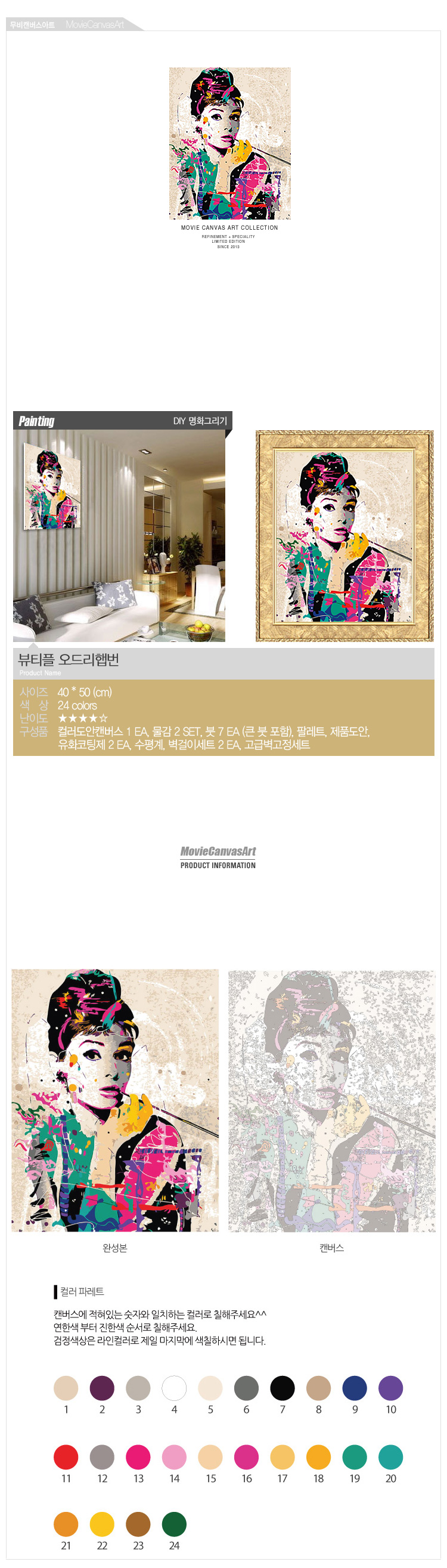 (물감2배, 컬러캔버스, 뷰티플, 오드리햅번, 인물, 여인)