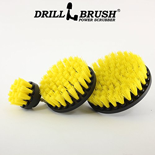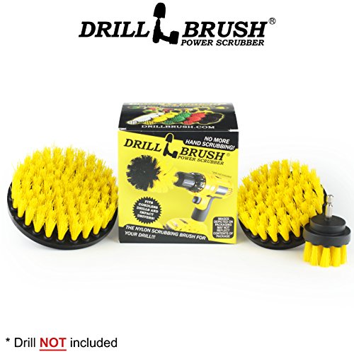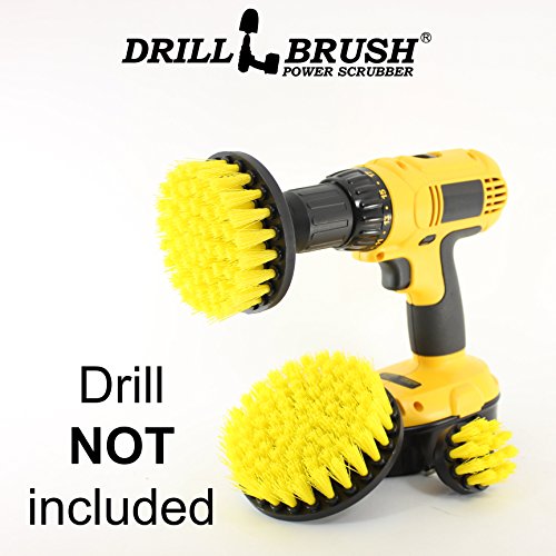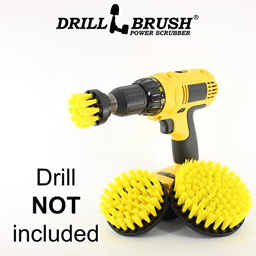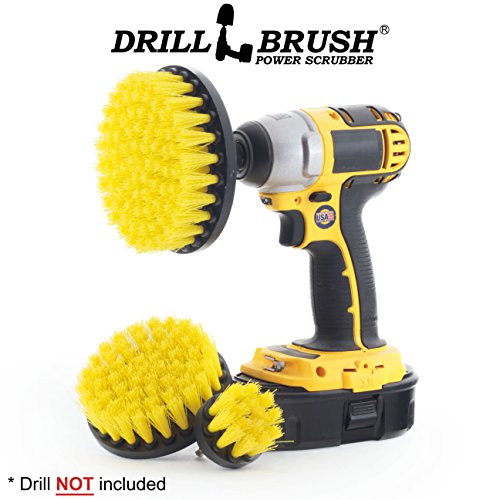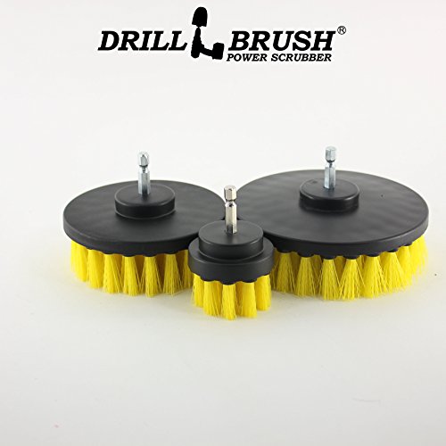 New Quick Change Shaft 3 Pack Medium Yellow Drill Brush Grout, Tile, Shower Stall and Door Track, All Purpose Bathroom Cleaning Brushes by Drillbrush