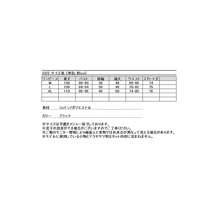 L사이즈(약) ????? 옷 길이 109cm 어깨 폭 39cm 바스트 84-94cm 소매 길이 49cm 스커트 길이 75cm 웨스트 70-82cm