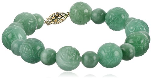 -. Title : 14k Yellow Gold Green Jade Carved Bead Strand Bracelet