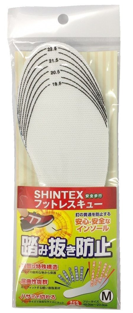 ○ Safety type insole possesses stepping resistance conforming to JIS T8101 (safety shoes) and prevents penetration of nails, glass pieces, etc from the sole of the shoe.