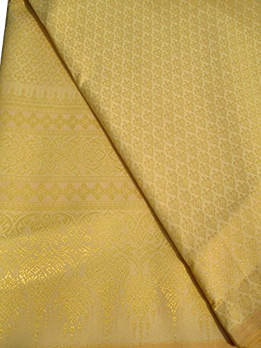 RaanPahMuang Unstitched Thick Thai YowRaet Silk Fabric for Skirts Dresses 40x140", Paisley Yellow