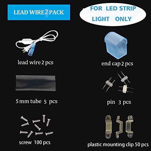 - Include: [50pc LED strip light plastic mounting clip], [2pc power cord], [2pc end cap], [5pc 5mm heat shrinkable tube],[3pc pin], [100pc Screw]