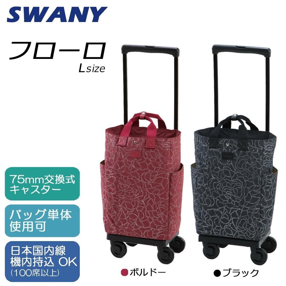 | 75mmキャスター、容量アップ、バッグとフレームは簡単着脱など欲しい機能が沢山搭載されたモデルです。表生地はデニム調生地にシルバーのフラワープリントを施しています。国内線機内持ち込み可能サイズです。電車・バスなどお乗りの際の自走防止用ストラップが付属しています。 |