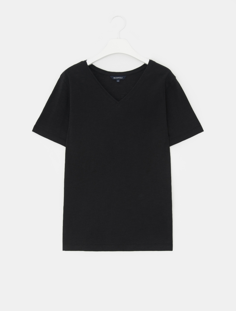 - 가벼운 슬럽 소재를 사용한 브이넥의 티셔츠입니다.