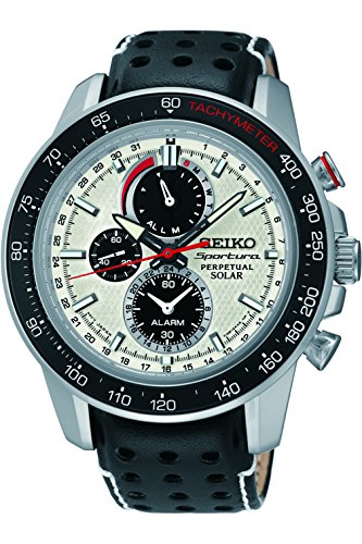 -. Title : Seiko Sportura Solar Black Leather 100 M Stainless Steel Case Chronograph Watch SSC359