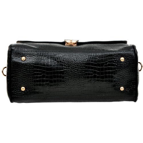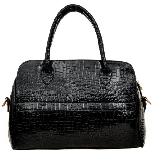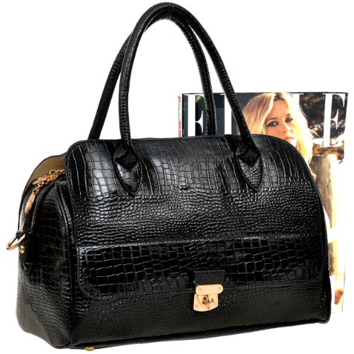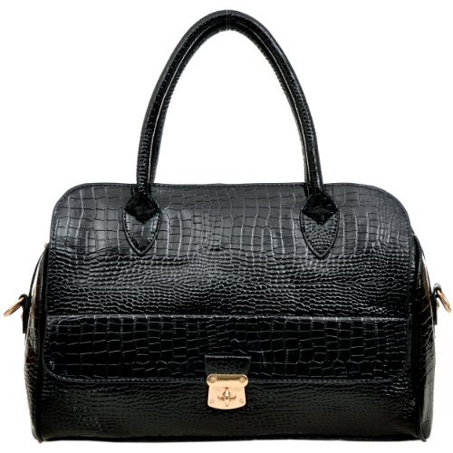 - Title : MG Collection ALECIA Black Crocodile Textured Turn-lock Doctor Style Tote Purse