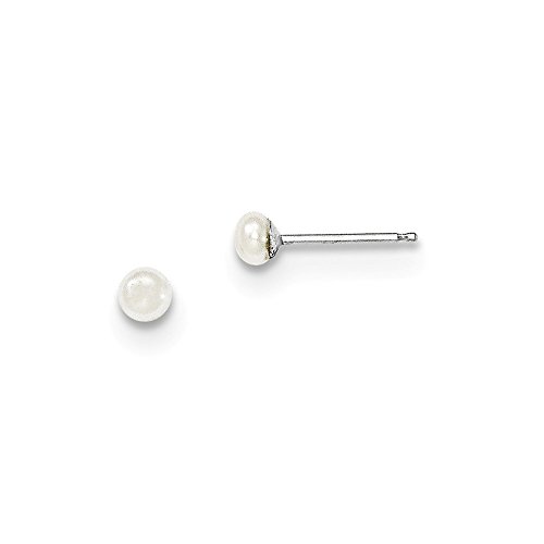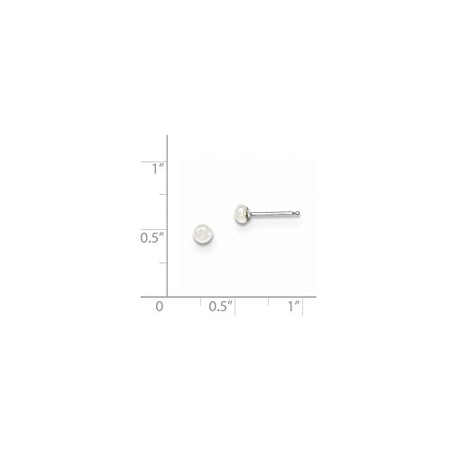 Solid 14k White Gold 3-4mm White Button FW Cultured Pearl Stud Earrings