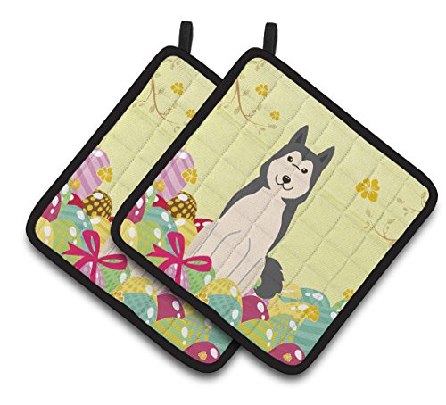 Caroline's Treasures BB6025PTHD Easter Laika Spitz Pair of Pot Holders, 7.5" x 7.5", Multicolor
