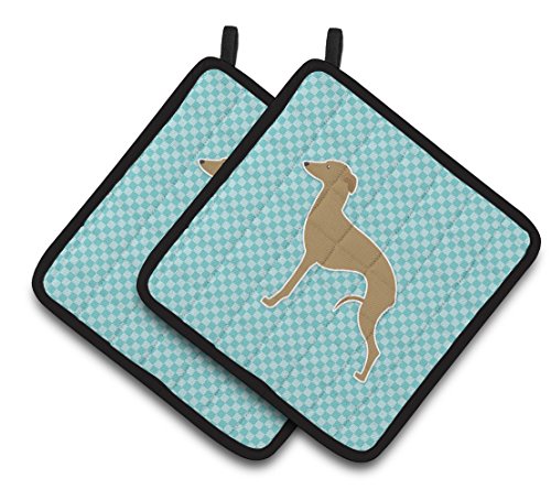 Caroline's Treasures Italian Greyhound Checkerboard Blue Pair of Pot Holders BB3714PTHD, 7.5HX7.5W, Multicolor