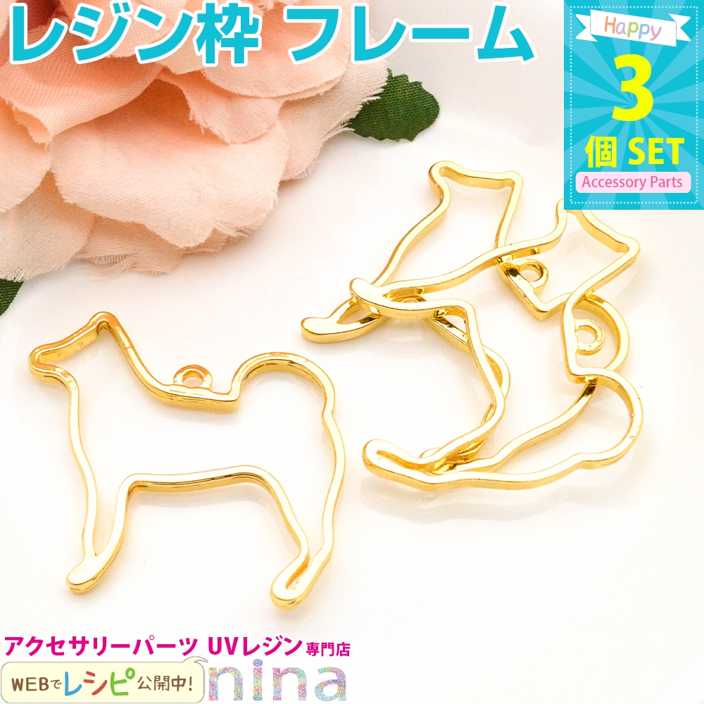 ■商品名:レジン枠 犬 ドッグ ゴールド 3個セット 2