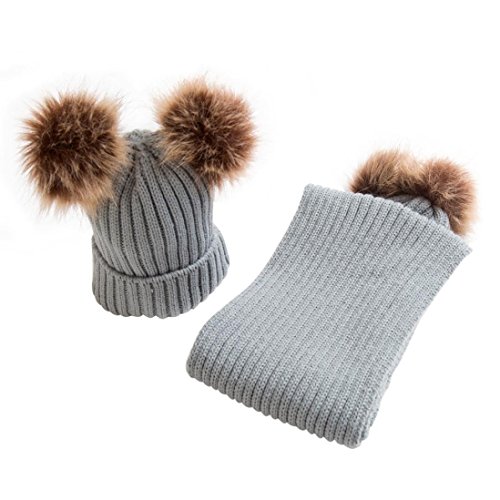 (WuyiMC)/Accessories/Cold Weather Accessories/DIRECT FROM USA/WuyiMC Kids Hat and Scarf Set, Winter Knit Beanie Pom Pom Hat Unisex Baby Warm Chunky Thick Stretchy
