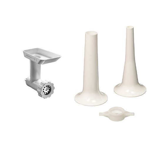 -. Binding : Product Bundle -. Feature : Powered by your KitchenAid Stand Mixer. Fits all Household KitchenAid Stand Mixers. / Fine Plate to grind meats and dried breads. / For the Food Grinder Attachment to make small or large sausages (Requires FGA, sold sep.). / 3/8" Stuffing Tube for breakfast and other smaller sausages. -. ProductGroup : Kitchen -. ProductTypeName : KITCHEN -. Title : KitchenAid FGA Food Grinder Attachment & KitchenAid SSA Sausage Stuffer Kit Attachment