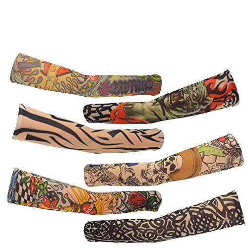-. Feature : Seamless and stretchable:Made of 92% nylon and 8% spandex elastic fabric which fits your arms,easy to slip on &off. / Unisex and one size fits most:Both men and women can wear it.It fits your arms comfortably,unless you have huge arms. / Stylish patterns:Make you standout in the crowd and great to show your personality. Most popular designs such as skull,tigers,trial and etc. / Fits for various occasions:Protect your arms from the strong direct sunlight.Prefect accessories for parties, cos play, festival dressing and etc.Wonderful gift choice for family and friends. / Package:6pcs different fake art arms tattoo sleeves are individually packaged in a poly bag.it approximates 15.4 in* 3.4 in(when not stretched )