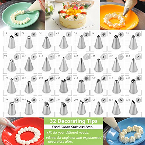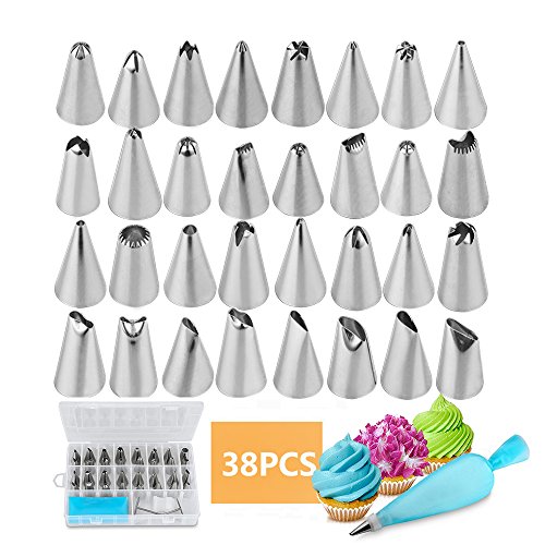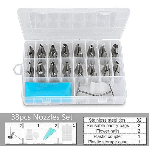 Cake Decorating Tips Kit, Icing Piping Tips 38pcs Nozzles Set with 32 Pastry Tips, Silicone Pastry Bags, Coupler and Flower Nails, with Storage Case for Cookie, Cupcakes and Cakes Decoration