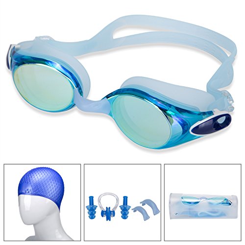 -. Title : Swim Goggles with Swim Cap Ear Plugs and Nose Clip,Swou Swimming Goggles Anti Fog UV Protection No Leaking Shatterproof for Adult Men Women