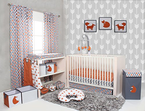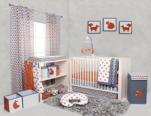 -. Title : Bacati Playful Foxs 10 Piece Crib Set without Bumper Pad, Orange/Grey