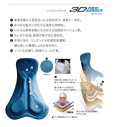 소프트한 촉감과 최적인 쿠션성에 엉덩이를 지키는 패드「3D-네오 플러스」를 장착.