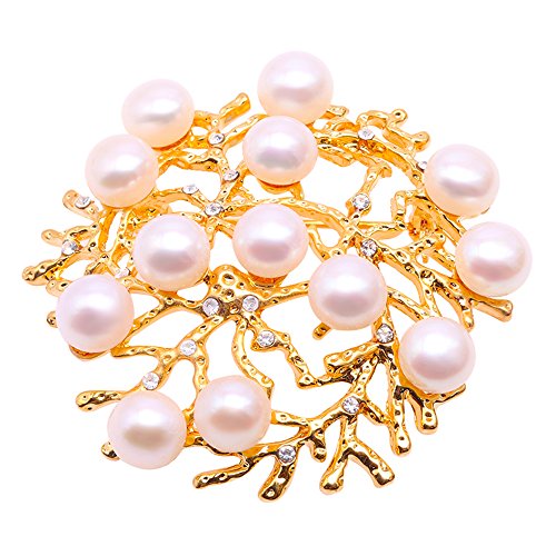 *The exquisite brooch is fully inlaid with shiny zircons and 7.5-8mm high quality freshwater pearls: perfectly smooth, with metallic mirror-like luster.