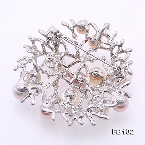The exquisite brooch is fully inlaid with shiny zircons and 7.5-0.5mm high quality freshwater pearls: perfectly smooth, with metallic mirror-like luster.