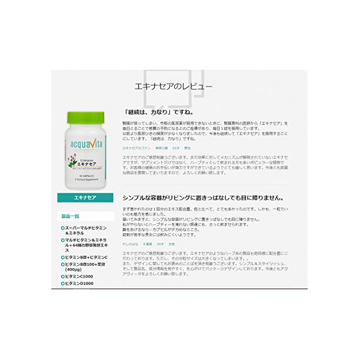 원본상품명: acqua vita(アクアヴィ?タ) エキナセア 30粒
