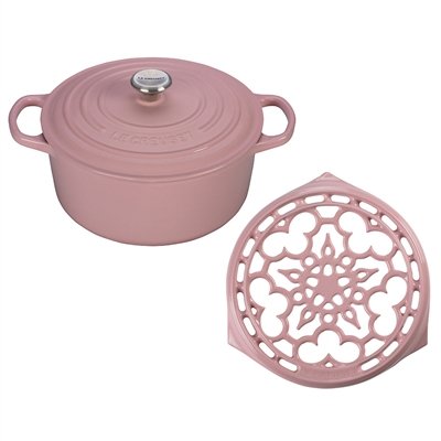 -. Title : Le Creuset Oasis Set: 4.5 qt. Round Dutch Oven and 9" Deluxe Round Trivet Hibiscus