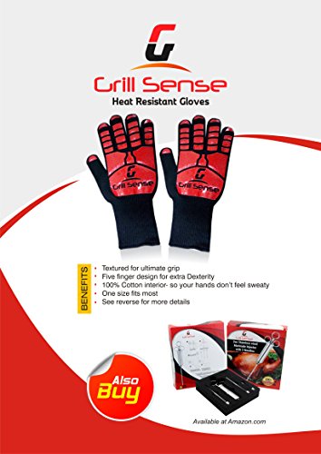 Grill Sense 932F Heat Resistant Cooking Gloves for Baking, Barbecue, Fire Pit, Oven, Grilling & Smoking- 1 Pair