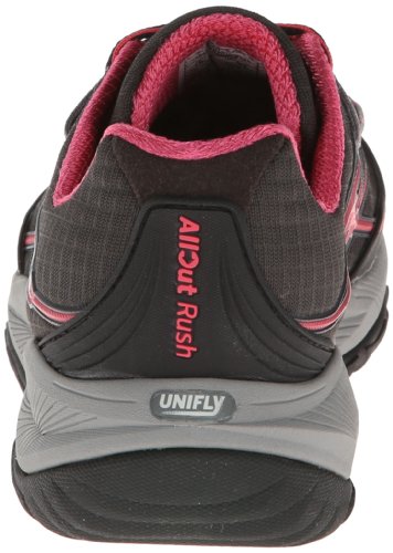 With 16mm of cushioning, natural shaping and intelligent impact absorption, our Allout Rush shoe will help you unleash your best run. A flexible underfoot wrap creates continuous contact with the arch for increased mobility. Ultra-resilient Uni-Fly impact absorption gives you firm takeoffs and soft landings. Get a grip on any terrain with the multi-directional M-Select GRIP traction.