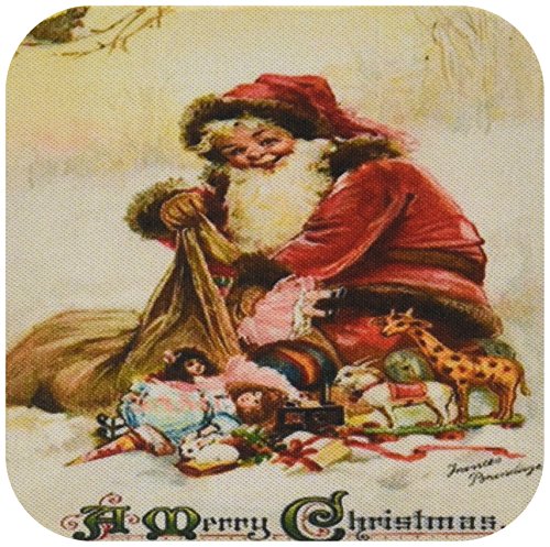 3dRose cst_46994_2 Vintage Christmas-Christmas, Santa Claus, Xmas, Vintage, Merry Christmas, Nostalgic, Holiday-Soft Coasters, Set of 8