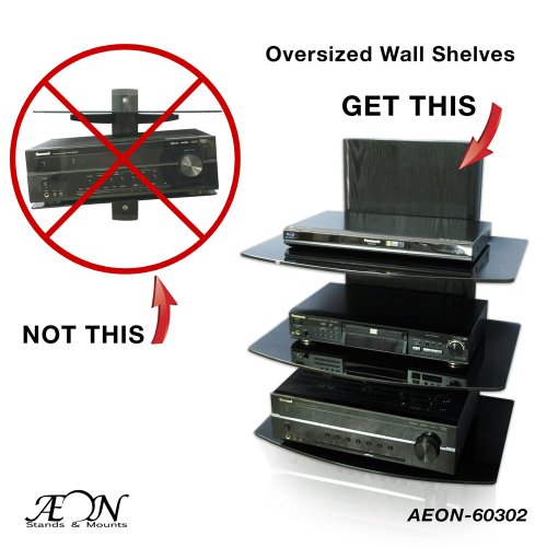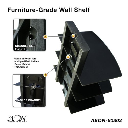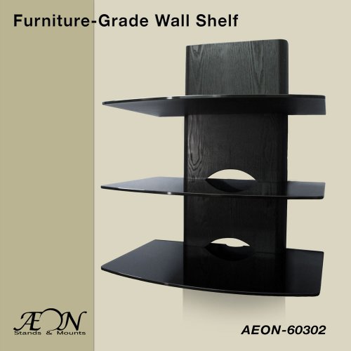 -. Binding : Electronics -. Brand : Aeon Stands and Mounts -. Color : Black -. EAN : 0689466135770 -. Feature : Oversized heavy duty child safe shelves fit even the largest components / Shelf size : 23.5" wide x 14.5" deep. -Holds up to 35 pounds per tier/shelf / Gain valuable floor space with this beautiful component shelf. / Beautiful wood grain finish with smoked glass, includes easy to use cable management. / Made from 8mm strong and safe tempered glass- Child safe -. Label : AEON Stands and Mounts -. Manufacturer : AEON Stands and Mounts -. Model : AEON-60302 -. MPN : AEON-60302 -. PackageQuantity : 1 -. PartNumber : AEON-60302 -. ProductGroup : Speakers -. ProductTypeName : AV_FURNITURE -. Publisher : AEON Stands and Mounts -. Size : 31.60" Tall x 23.50" Wide x 16.60" Deep -. Studio : AEON Stands and Mounts -. Title : Component Shelf Mount with wood grain and three large glass shelves AEON-60302 -. UPC : 689466135770
