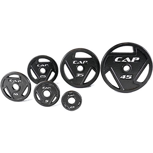 Studio : CAP Barbell* Publisher : CAP Barbell* Binding : Misc. Product Description Upgrade your home gym with this CAP Barbell 2" Olympic Grip Plate. It lets you increase the intensity of your workout and is an exceptional choice for your weight-lifting routine. The CAP Barbell grip plate is made from solid cast iron for enhanced durability. It also includes convenient grips that assist you in loading it onto the bars. The single weight plate is coated in a glossy finish for added protection. It fits most Olympic-style weightlifting bars and a wide variety of machines. This item is available in a range of weights that are clearly marked in contrasting silver paint. 0